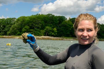 Lane's oysters are grown in the Casco Bay region by Amanda Moeser. Amanda’s Oysters are bottom planted in both cages and the mudflats near the mouth of the Royal River in Yarmouth. As a result, these bivalves are exposed to both the mighty tidal waters of Casco Bay, and the freshwater of Southern Maine watersheds, creating a deep and full flavor profile.